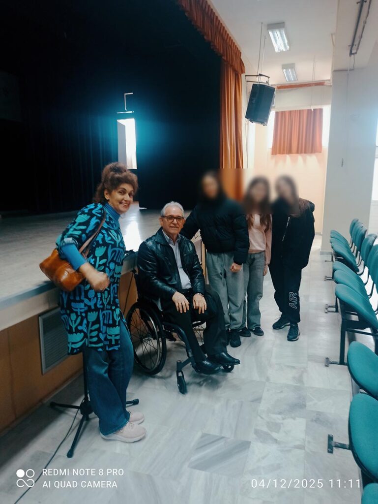 - Στις 4 Δεκεμβρίου 2025, ύστερα από πρόσκληση της Δ/ντριας κας Μαρίας Κααραμπάτσα και της καθηγήτριας Αικατερίνης Βαλδούμα το Γυμνάσιο – Λύκειο Γιάννουλης Λάρισας και μίλησαν στους μαθητές για τα θέματα της αναπηρίας.