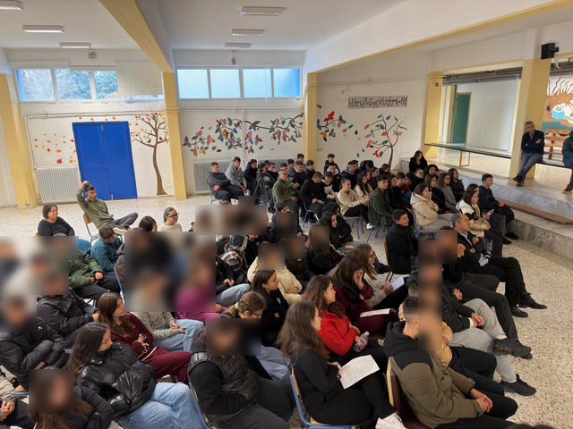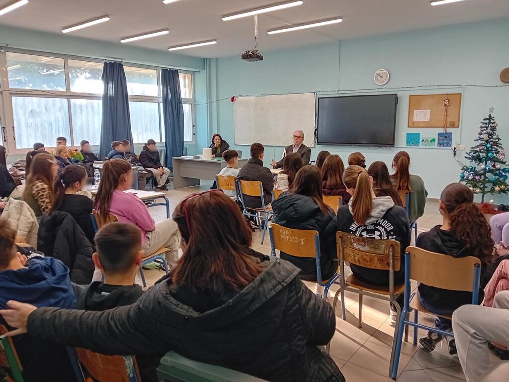- Στις 17 και 18 Δεκεμβρίου 2025, τους μαθητές των Γυμνασίων Γόννων και Αργυροπουλίου Ν. Λάρισας, ύστερα από προσκλήσεις των Διευθυντών κ. Δημ. Φιλιππόπουλου και Ντίνας Τσιμπόλη Βασιλικής, αντίστοιχα και της Ψυχολόγου κας Μαρίας Βαρσάλου.