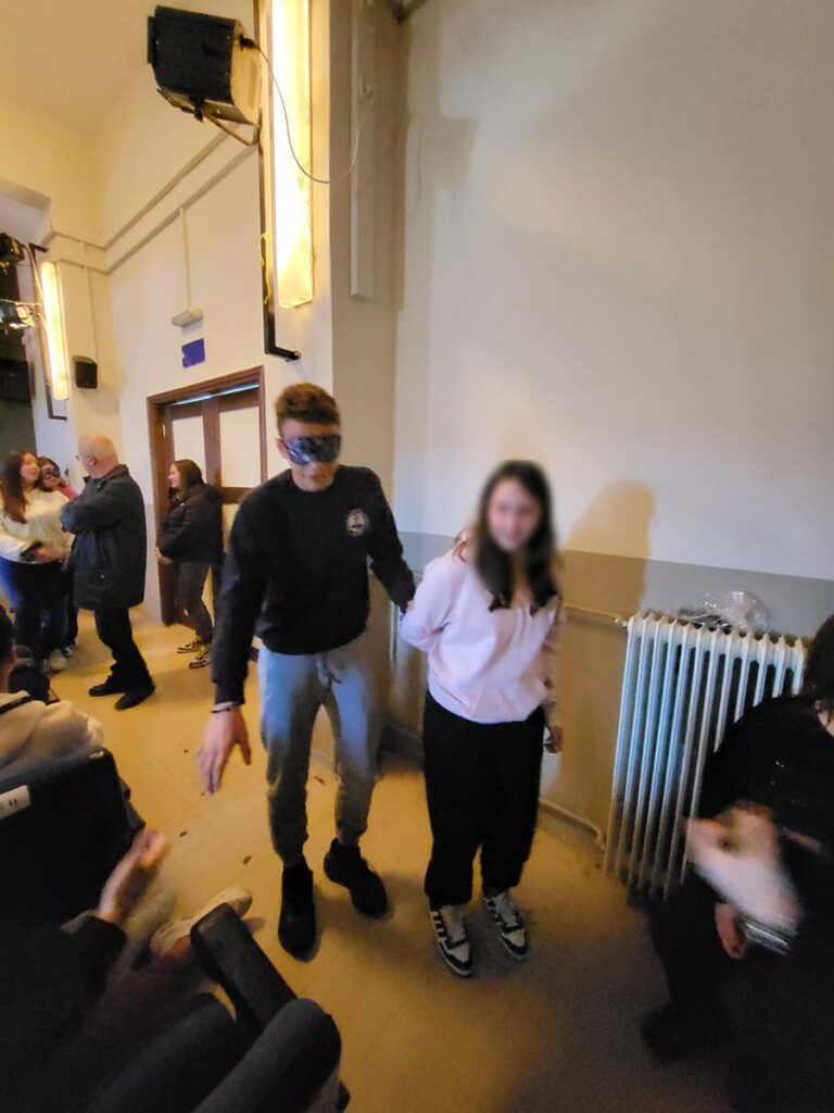 Στα πλαίσια των ανωτέρω, παρουσιάστηκε και ένα βιωματικό σεμινάριο από την Φανή Τσικούρα, άτομο με οπτική αναπηρία, μέσα απ΄το οποίο οι συμμετέχοντες γνώρισαν την καθημερινότητα, την εκπαίδευση, την επαγγελματική αποκατάσταση των ατόμων με αναπηρία όρασης. Ενημερώθηκαν για την χρήση του λευκού μπαστουνιού, την γραφή Braille και για τις σύγχρονες τεχνολογίες που υποστηρίζουν την αυτονομία των ατόμων με οπτική αναπηρία και παρακολούθησαν τεχνικές συνοδείας βλέποντος οδηγού. Η θερμή ανταπόκριση μαθητών και εκπαιδευτικών, η ενεργή συμμετοχή τους και οι πολλές ερωτήσεις που τέθηκαν οδήγησαν στη διεξαγωγή ενός γόνιμου διάλογου, παρουσιάζοντάς τους, τις δυσκολίες και τα προβλήματα που αντιμετωπίζουν τα άτομα με αναπηρία, στην καθημερινότητά τους ως πολίτες του νομού μας, αλλά και της χώρας γενικότερα.